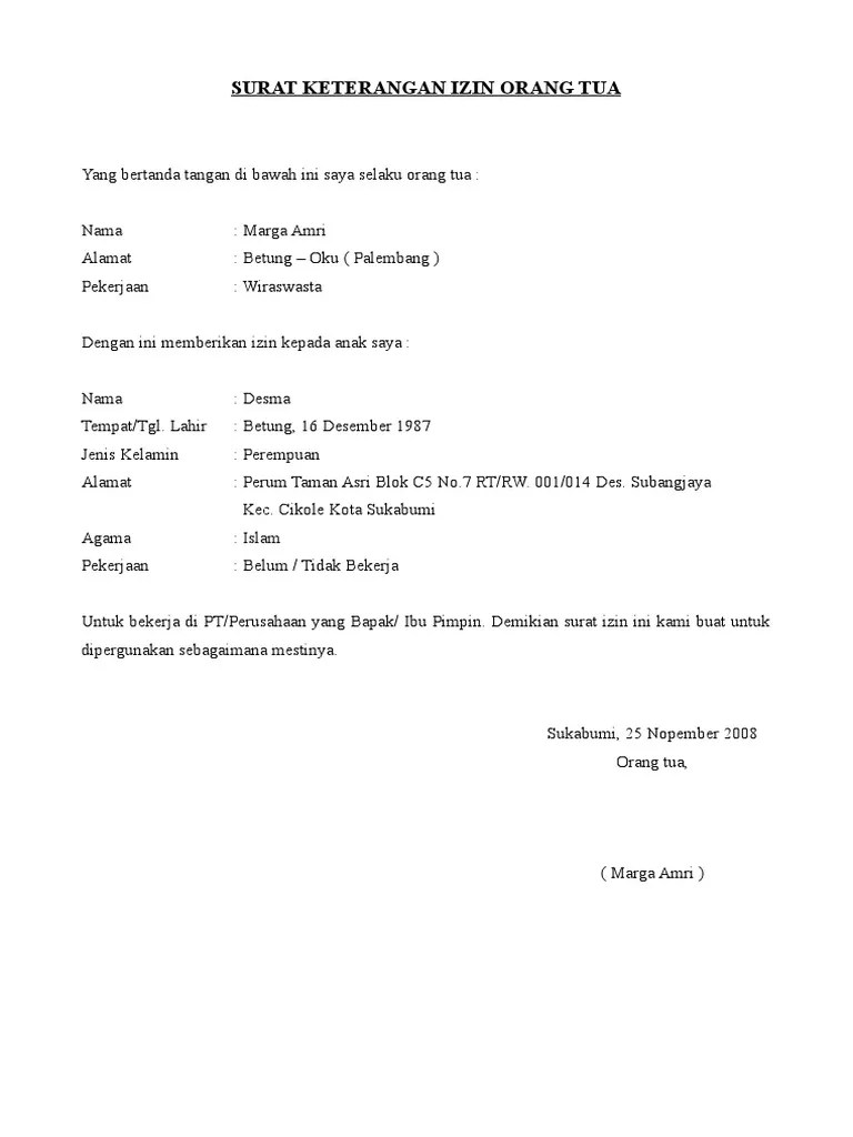 Surat Keterangan Orang Tua Tidak Bekerja : Contoh Surat Izin Orang Tua Untuk Bekerja Tulis Tangan Nusagates - Setelah melewati interview, psikotest dan mcu (medical chek up), .